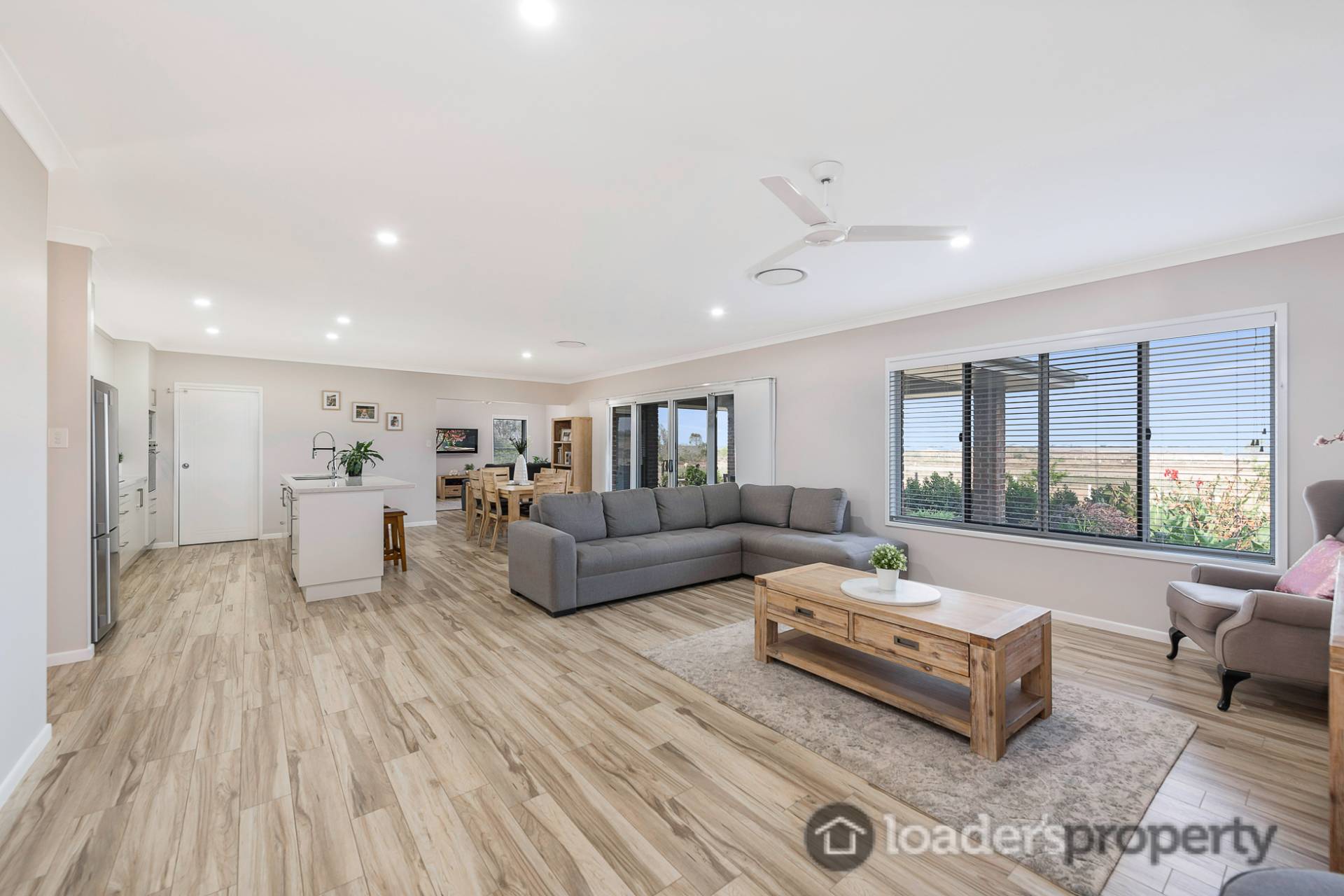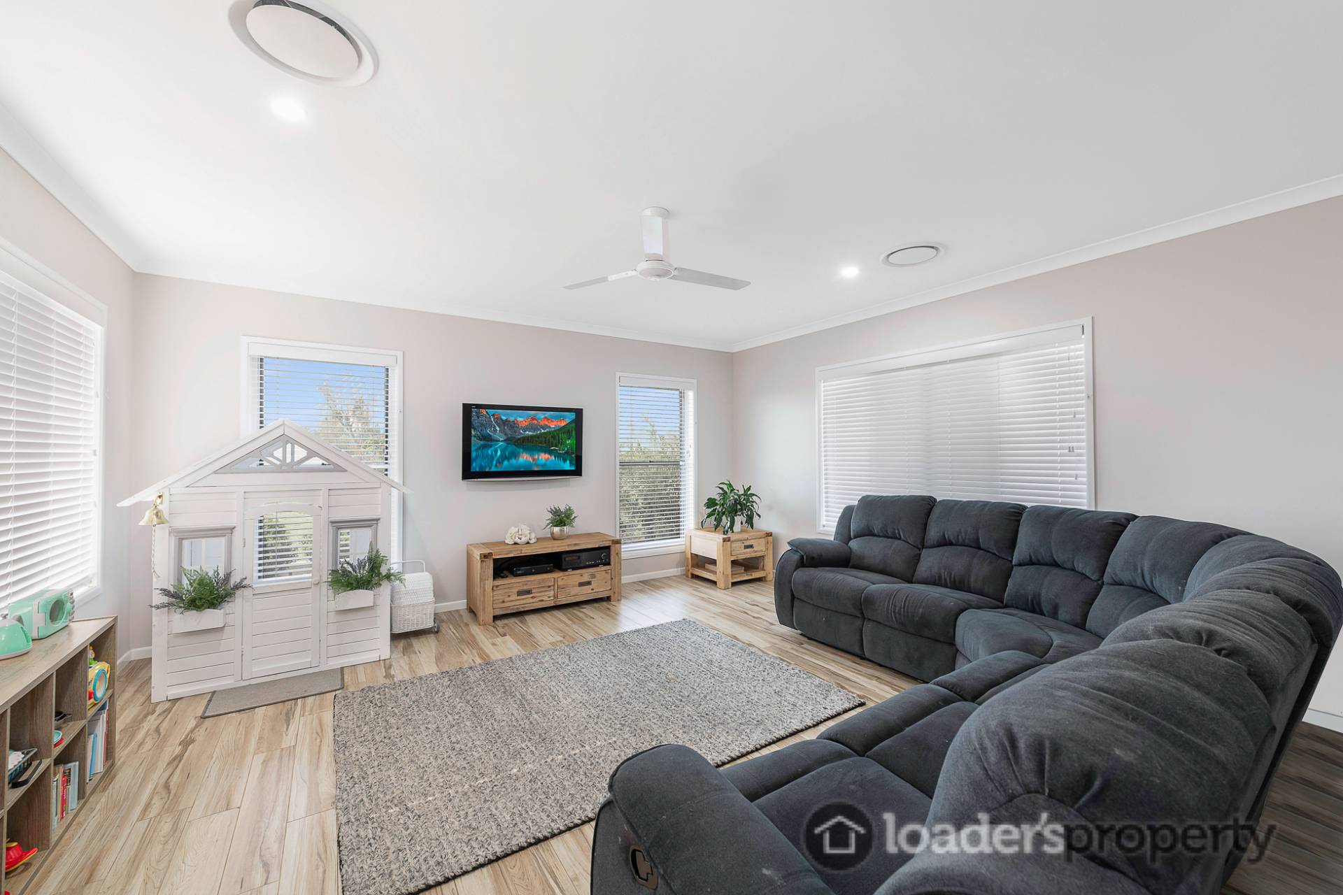 - Large open plan lounge & dining with feature wood look tiles to maintain cooler temperatures in the summer, plus fully separate media room for the kids & additional casual lounge area (yes that’s 3 living areas).