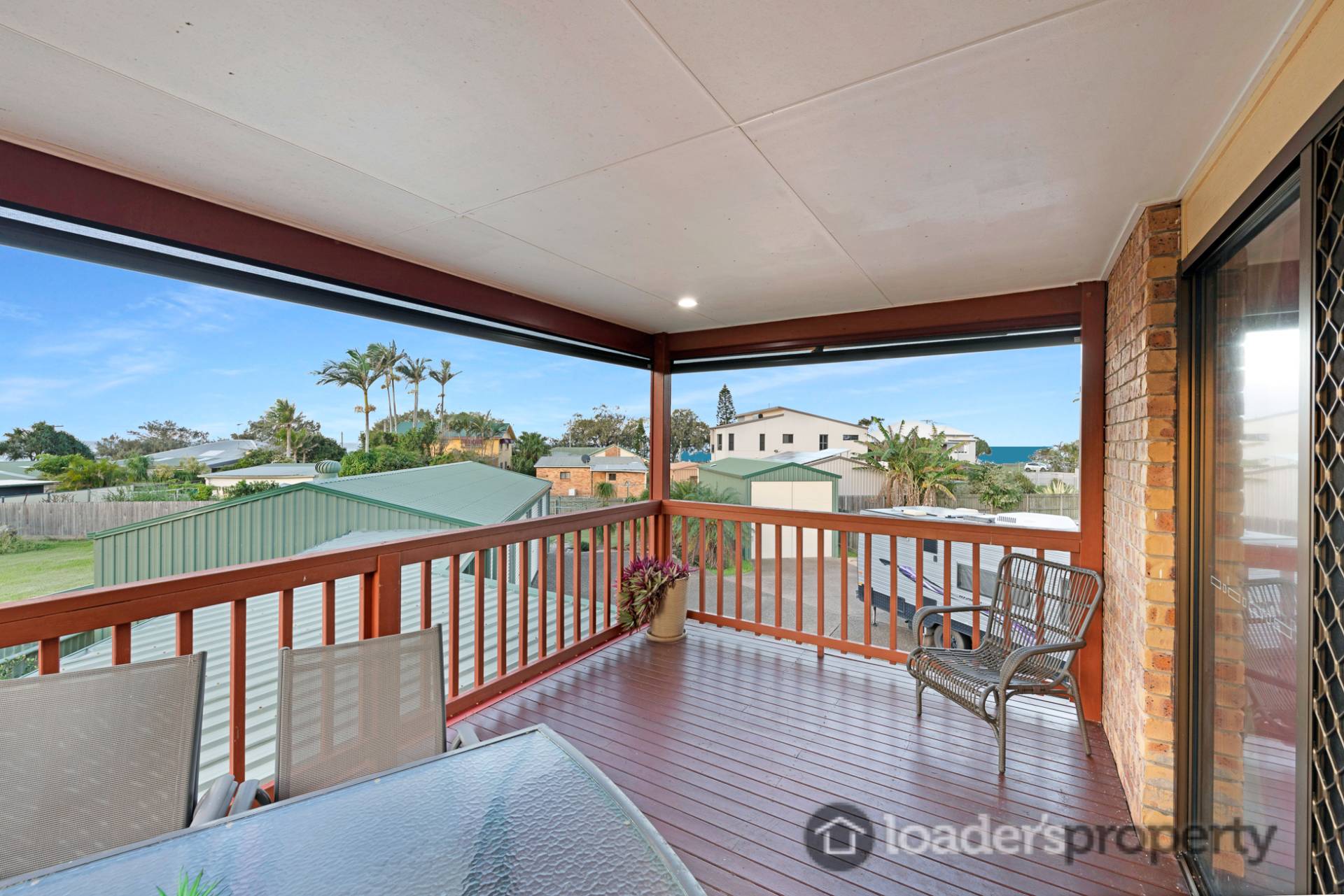 -          The deck is perfectly positioned facing north east and captures the prevailing summer breezes. This space is finished off with full custom built electric all-weather blinds for all year round comfort