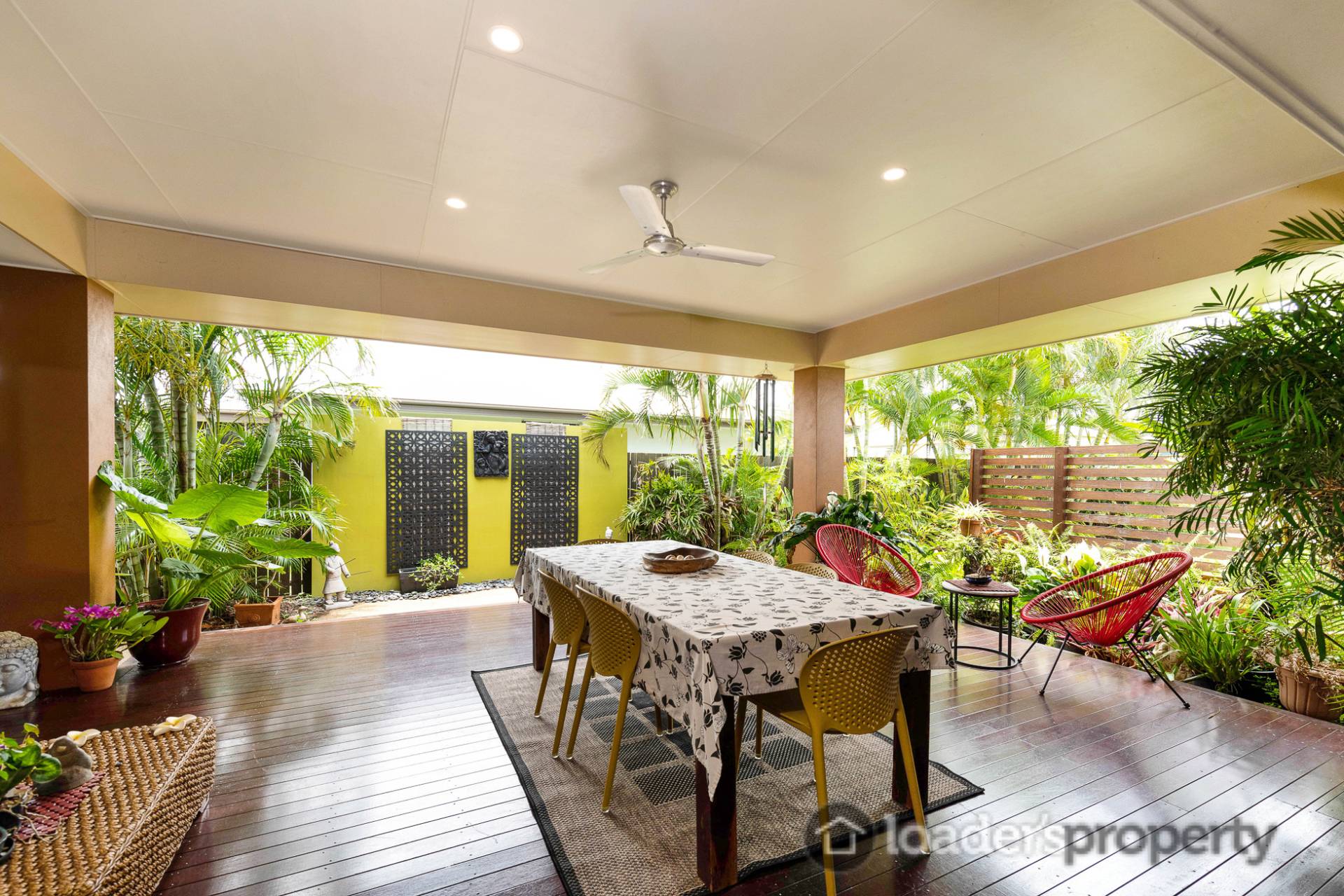 • Great outdoor alfresco deck area off the kitchen space providing a great space to entertain, very private overlooking the landscaped surrounds. Tropical themed you will feel so relaxed entertaining in this ever so private space.